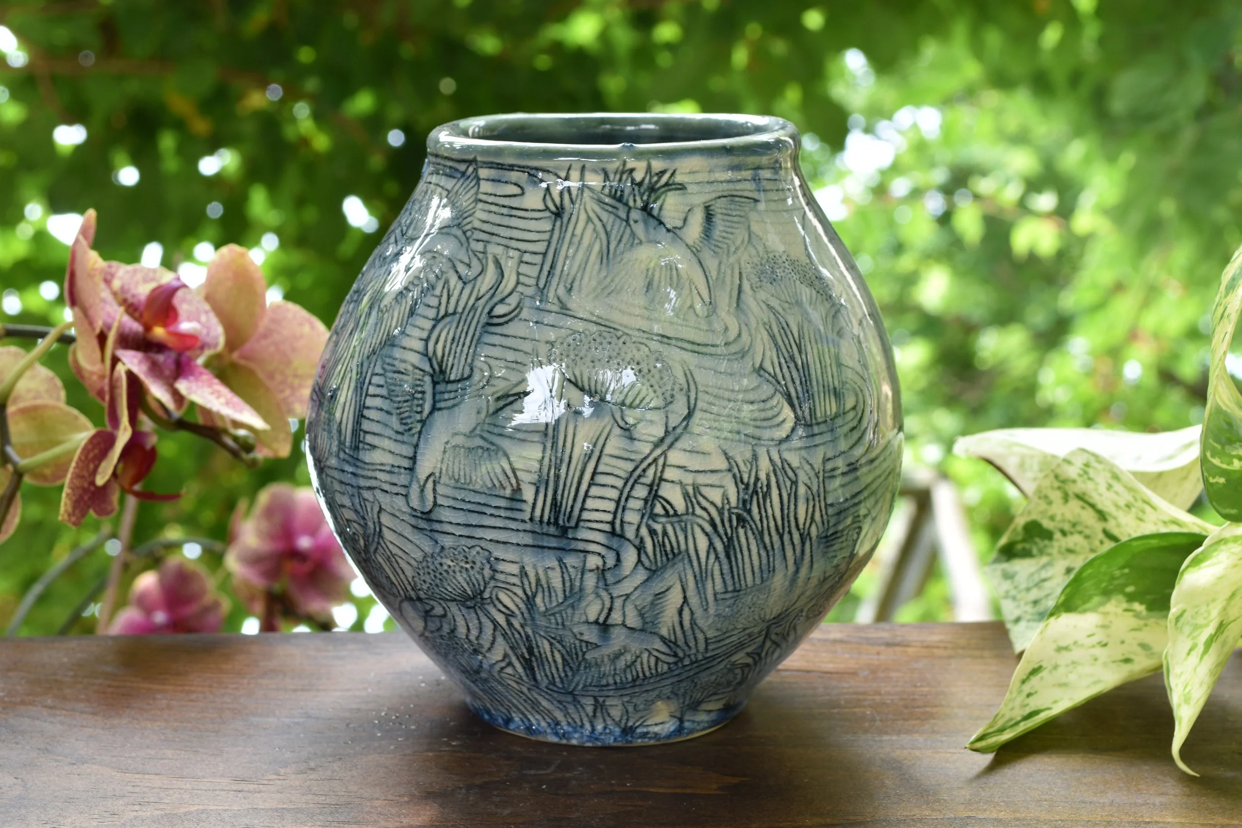 A vase that falls under the category: Craft, glazed in an inlay technique. The pattern comes from Maurice Pillard Verneuil, a designer in early 1900’s France whose work and life has become obscure but, in my opinion, deserves a lot more recognition.